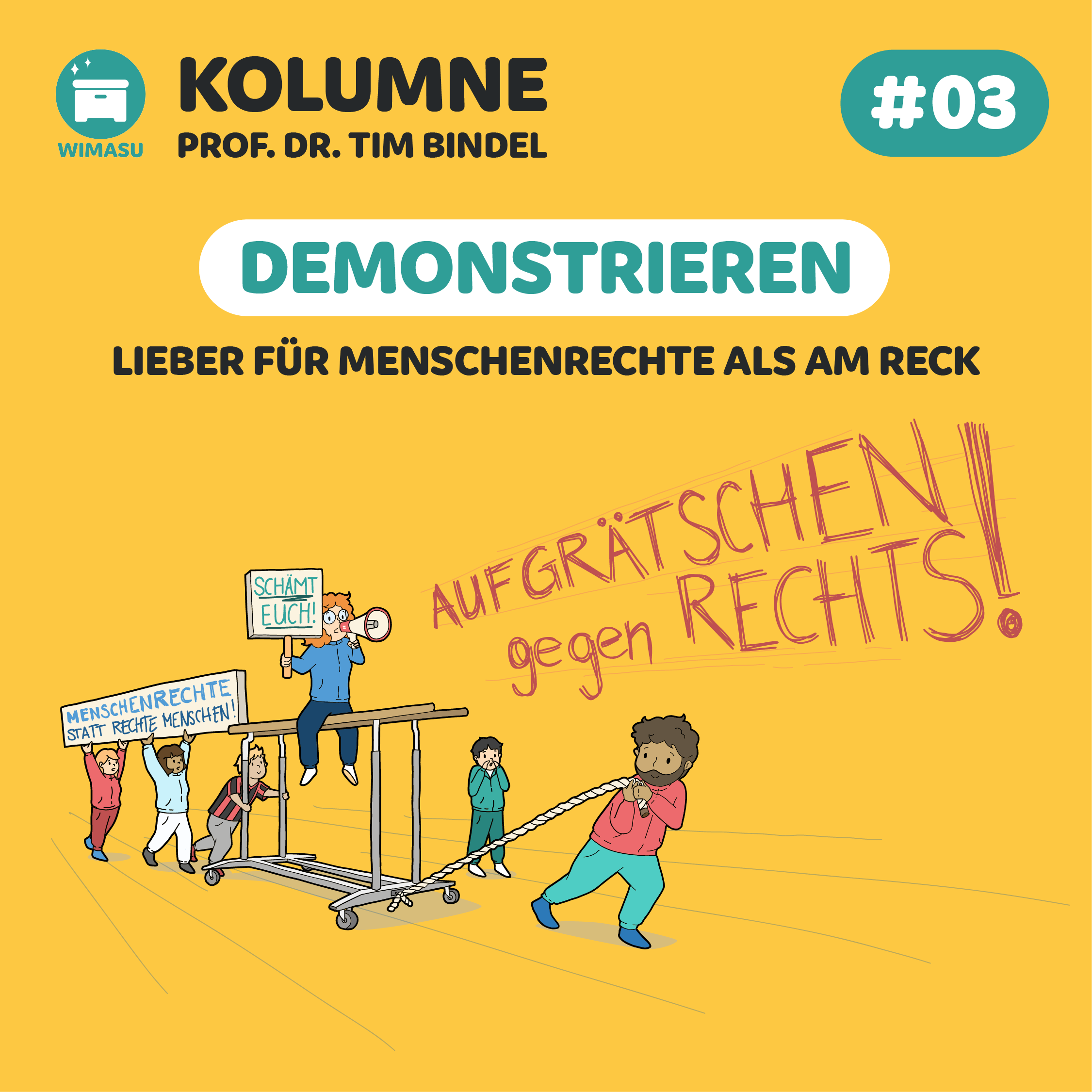 Tim Bindel beobachtet die Welt des Sports und das Leben junger Menschen. Welche Rolle das Demonstrieren im Sportunterricht haben sollte, wird in dieser Kolumne besprochen. Der Professor lädt zum Mitdenken, Dagegenhalten und zum Diskutieren ein; für einen modernen Sportunterricht.