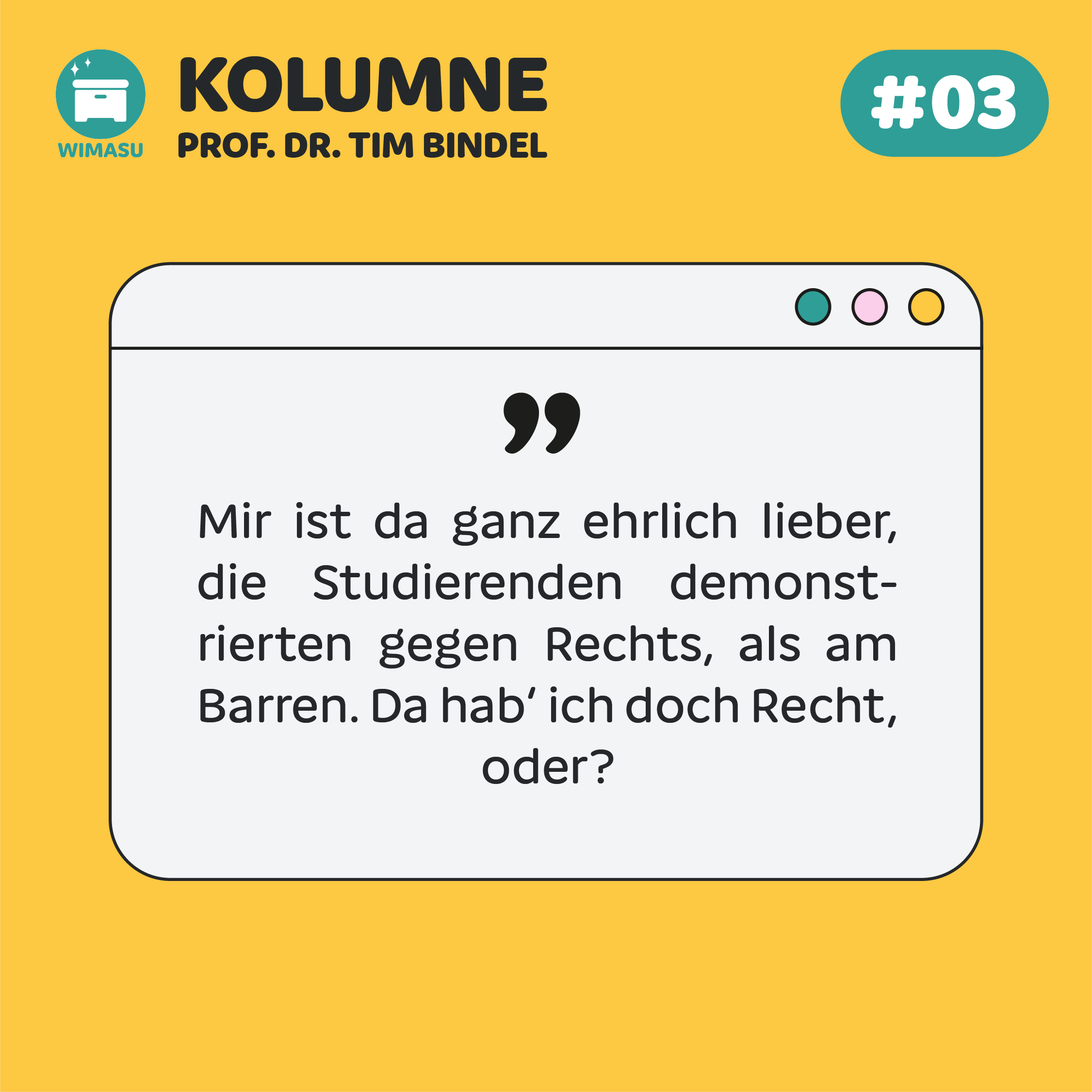Mir ist da ganz ehrlich lieber, die Studierenden demonstrierten gegen Rechts, als am Barren. Da hab‘ ich doch Recht, oder?