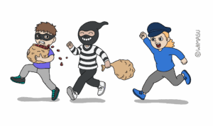 Alle Kinder (Räuber:in) laufen im Raum umher und haben zum Spielstart in den Händen das Diebesgut (je ein zerknülltes kleines rotes Papier). Zwei Polizisten (Fänger) habe nun die Aufgabe, alle Rubine wiederzufinden: Wer von einem/einer Polizist:in gefasst wird, muss beide Hände öffnen und so die Rubine darin aushändigen. Die Anzahl Rubine kann variiert werden. Bei kleineren Gruppen bekommen die Räuber:innen zum Start je zwei Rubine.