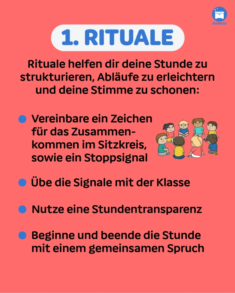 Rituale helfen dir deine Stunde zu strukturieren, Abläufe zu erleichtern und deine Stimme zu schonen.