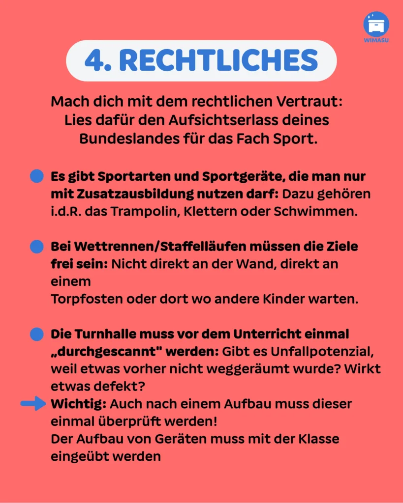Mach dich mit dem rechtlichen vertraut. Lies dafür den Aufsichtserlass deines Bundeslandes für das Fach Sport.