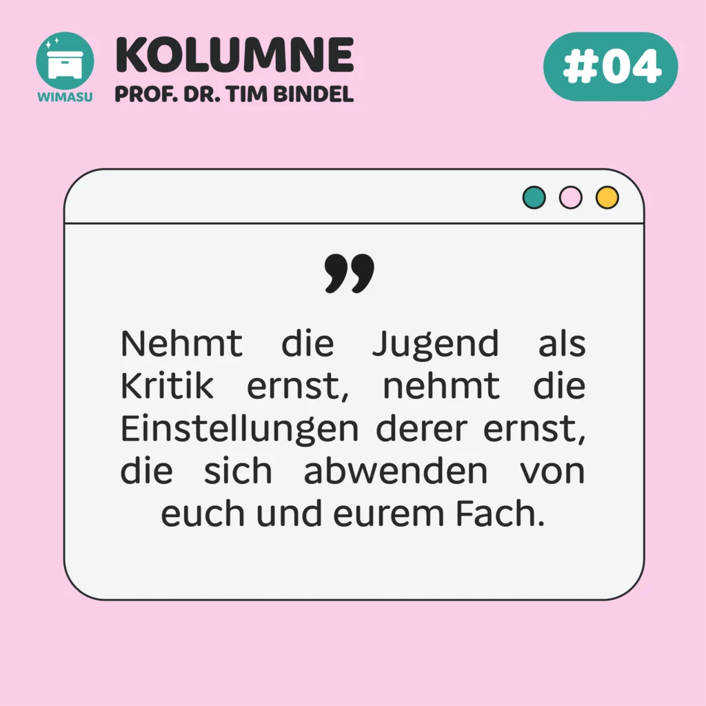 Nehmt die Jugend als Kritik ernst, nehmt die Einstellungen derer ernst, die sich abwenden von euch und eurem Fach.