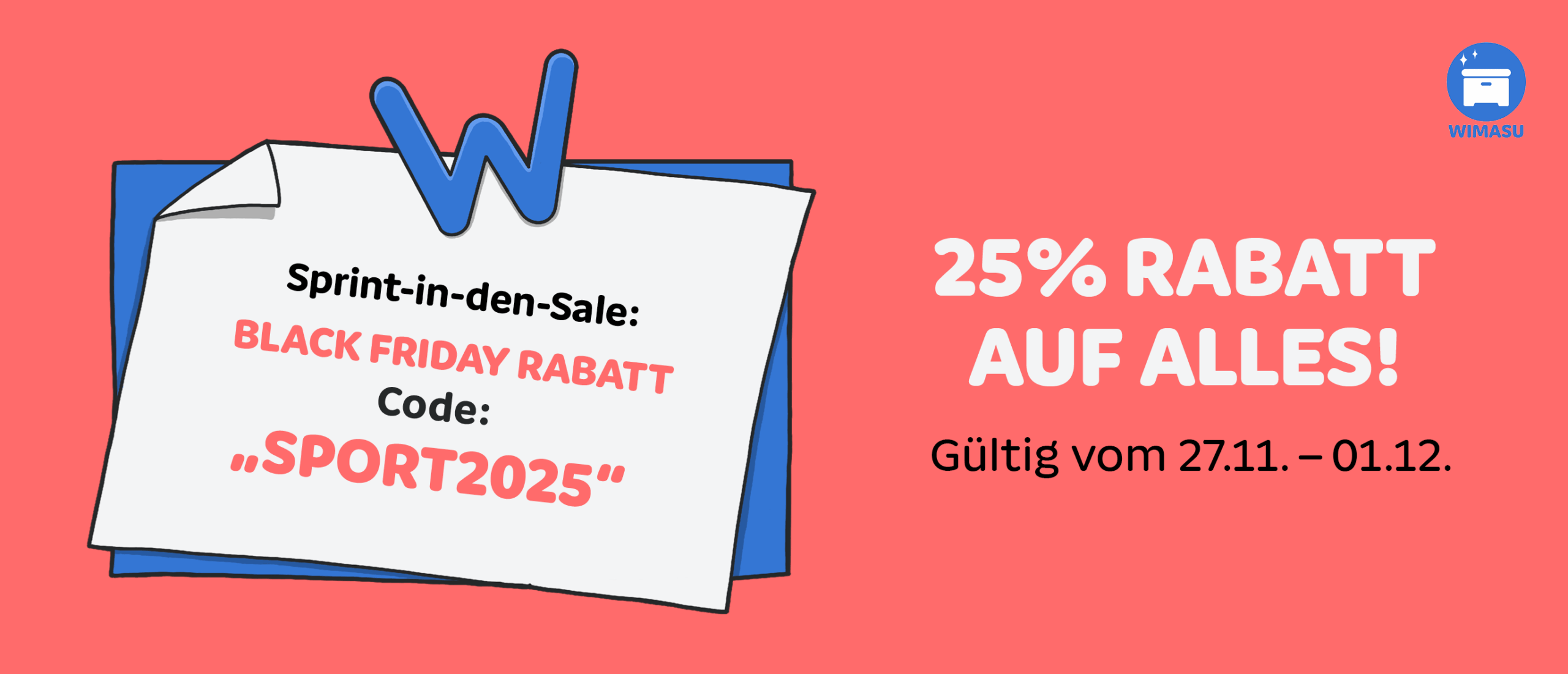 *Aktionsbedingungen: Die Black-Week-Aktion gilt vom 27.11. bis 01.12.2025. Der Rabatt von 25 % wird nur durch Eingabe des Codes SPORT2025 im Warenkorb gewährt.Der Rabatt gilt auf das gesamte Sortiment und ist nicht kombinierbar mit anderen Rabatten.