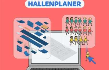 Selber zeichnen ist vorbei und du gewinnst Zeit, um dich auf die inhaltliche Planung deiner Unterrichtsreihe zu konzentrieren. Mit ein bisschen Übung in PowerPoint ist mit dem Hallenplaner fast jeder Aufbau aus einer 45°-Vogelperspektive möglich.