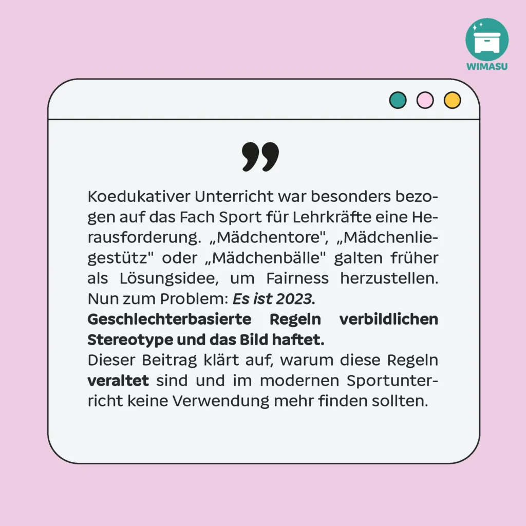 Koedukativer Unterricht war besonders bezogen auf das Fach Sport für Lehrkräfte eine Herausforderung. „Mädchentore“, „Mädchenliegestütz“ oder „Mädchenbälle“ galten früher als „gute“ Idee, um Fairness herzustellen. Nun zum Problem: Es ist 2023. Geschlechterbasierte Regeln verbildlichen Stereotype und das Bild haftet. Dieser Beitrag klärt auf, warum diese Regeln veraltet sind und im modernen Sportunterricht keine Verwendung mehr finden sollten.